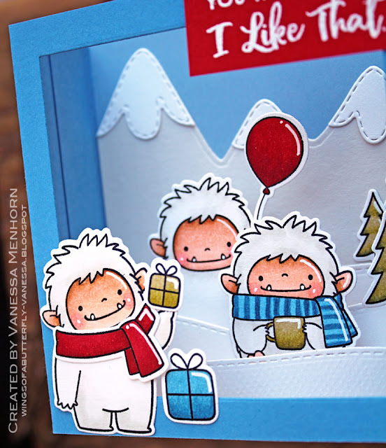 Happy Monday! This weekend, I had prescribed myself a much needed coloring therapy session. I colored the cute MFT yetis and made a fun shadowbox card with them. Is a yeti an animal? I hope they count, because I'd like to enter this to the current SSS Wednesday Challenge Animal Antics!